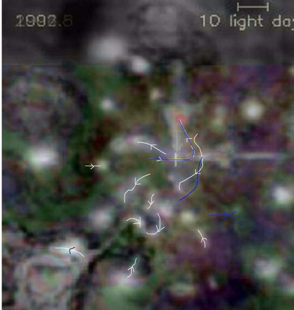 The same data, when reanalyzed, reveal a knotty structure at the position of the so-called black-hole. The star S2 appears to be rotating around that knot structure - very similar to what one would expect in the case of a double star system. The motions of other stars follow a three armed spiral structure. Violent ejections occur from the heart of the spiral structure. When the ejected material slam on the surrounding gases they create shocks and thus generate x-ray emissions. The places where such strong x-ray emissions are seen contain huge helium stars. The helical motions of gases can be seen to be emerging from the ejection mouth, which is embodied inside a spiral form.