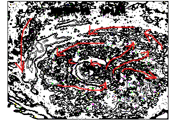 geometric pattern. Though the path of a test particle, moving in the vortex, can