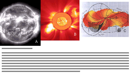The best place to study the planets in such a calmer environment is the planetary system around the sun. Though the planets move in orbits in a near perfect accuracy powered by the gravitational force, the data sent by different spacecrafts like Voyagers, Pioneer, Ulysses, Galileo, Soho etc. during the last few years have changed our old ideas about the solar system. The data show that the planets are moving through a hazardous turbulent environment swirling around the sun. The pictures taken by SOHO show the constant outflows of the plasma wind from the solar corona, which are moving through the solar system extending beyond the realm of Neptune and Pluto. These solar turmoil moves in accelerated speed reaching millions of kilometers an hour as they pass by the planets. The atmosphere around Earth shield us from the hazards of the solar wind. A magnetosphere, which surround the Earth covering the distance of hundred thousand of kilometers from Earth's surface, trap the charged ions of the solar wind. These charged particles can only leak around the North and the South Poles. When they leak they create fabulous scenes of Auroras. Magnetosphere, similar to Earth, exists around the biggest planet in the solar system, Jupiter too, where the magnetic field is much stronger. On this planet one can observe much more fascinating Auroral activities than on Earth.