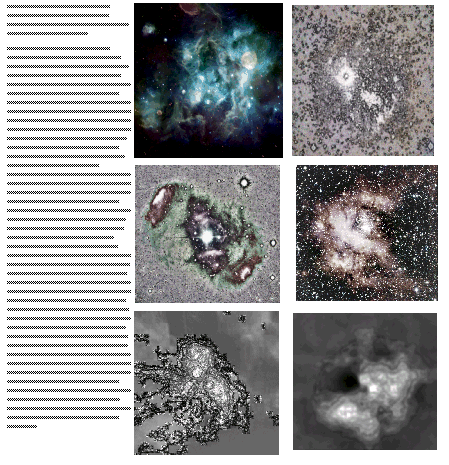The star formation model, in the new theory, differs much from this conventional view. First, the clouds do not condensate due to gravitational collapse initiated by he shocks of supernovae. The stars are born inside cloudlets which are expelled from the shells of larger structures, where bigger stars or stellar clusters take shapes as filamentary knots. As the knots tighten while they evolve through the turbulent medium, cloudlets are hurled outward. As the outflow strikes the surrounding medium, it experiences shock compression and the seeds of stellar structures are created. Thus smaller and smaller structures, may form while triggered by the ejections from larger structures. The birth of a structure at any particular scale have consequences in generating a series of births of smaller structures, which in turn set the conditions of birth of even smaller structures in the next scale. It is the shock, caused by the birth of a structure at a large scale, which creates the conditions of births of the smaller objects. It is not the gravitational attraction which is the driving force behind the star births. The dynamics of stellar births are driven primarily by magneto-hydrodynamic turbulent flows, which animate every corners of the universe. I shall come back to this discussion in the next chapter.