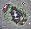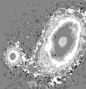 The galaxies, and clusters of galaxies also show similar ejections of jets and breakdown of structures. The ejections of jets are common in elliptical galaxies, whose radio output mainly come from such jets, and galaxies possessing active galactic nuclei. Smaller structures can be seen to be ejected from the centres of a few Seyfert galaxies. They seem to appear as high velocity splinters moving out from the cores. Association of quasars with some of these ejected splinters can be found. The ejections of jets and smaller structures are also seen at the centres of the clusters and superclusters.